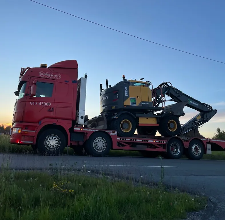Vi transporterer alle typer maskiner opp til 50 tonn. Jobben utføres trygt og effektivt til avtalt tid. Vi henter også vrakbiler på bestilling og leverer til godkjent oppsamlingsplass.